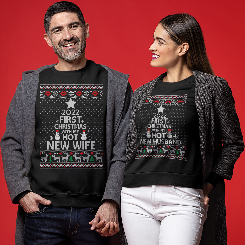 The holidays are just around the corner and that means one thing — it’s time to find our favorite Couples Ugly Christmas Sweaters! For those who are in a relationship during the Holidays, you can choose to go with First Christmas With My Hot New Husband Ugly Christmas Sweaters to complete each other.
