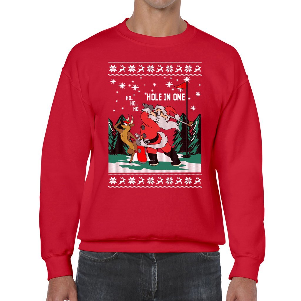 Fast shipping and delighted service: Our Funny Ugly Christmas Sweaters are produced and delivered to your location as fast as we could. HOLE IN ONE SANTA UGLY CHRISTMAS SWEATER FOR COUPLES is ideal for last-minute Christmas shirts for parties. We pledge to provide excellent customer service around-the-clock!