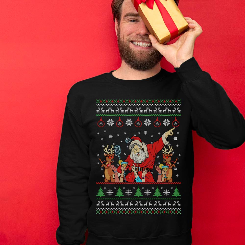 Party With Santa Christmas Sweater is a must for Christmas parties and your holiday season memories. Finding the ideal ugly sweater that complements your style and personality is important, as you well know. For this reason, we carefully select a collection that ensures originality and comedy so you may proudly exhibit your holiday passion. Find ugly Christmas sweaters that will make you the center of attention at the gathering!