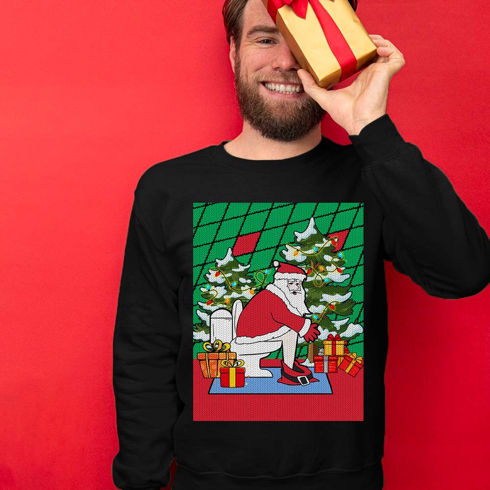 Fast shipping and delighted service: Our Funny Ugly Christmas Sweaters are produced and delivered to your location as fast as we could. SANTA ON TOILET FUNNY UGLY CHRISTMAS SWEATER is ideal for last-minute Christmas shirts for parties. We pledge to provide excellent customer service around-the-clock!