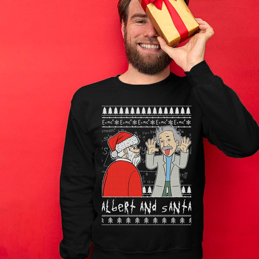 Fast shipping and delighted service: Our Funny Ugly Christmas Sweaters are produced and delivered to your location as fast as we could. SANTA AND ALBERT EINSTEIN UGLY CHRISTMAS SWEATER is ideal for last-minute Christmas shirts for parties. We pledge to provide excellent customer service around-the-clock!