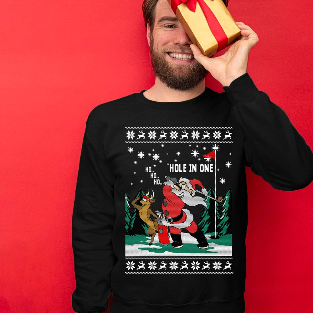 Fast shipping and delighted service: Our Funny Ugly Christmas Sweaters are produced and delivered to your location as fast as we could. SANTA PLAYING GOLF UGLY CHRISTMAS SWEATER is ideal for last-minute Christmas shirts for parties. We pledge to provide excellent customer service around-the-clock!