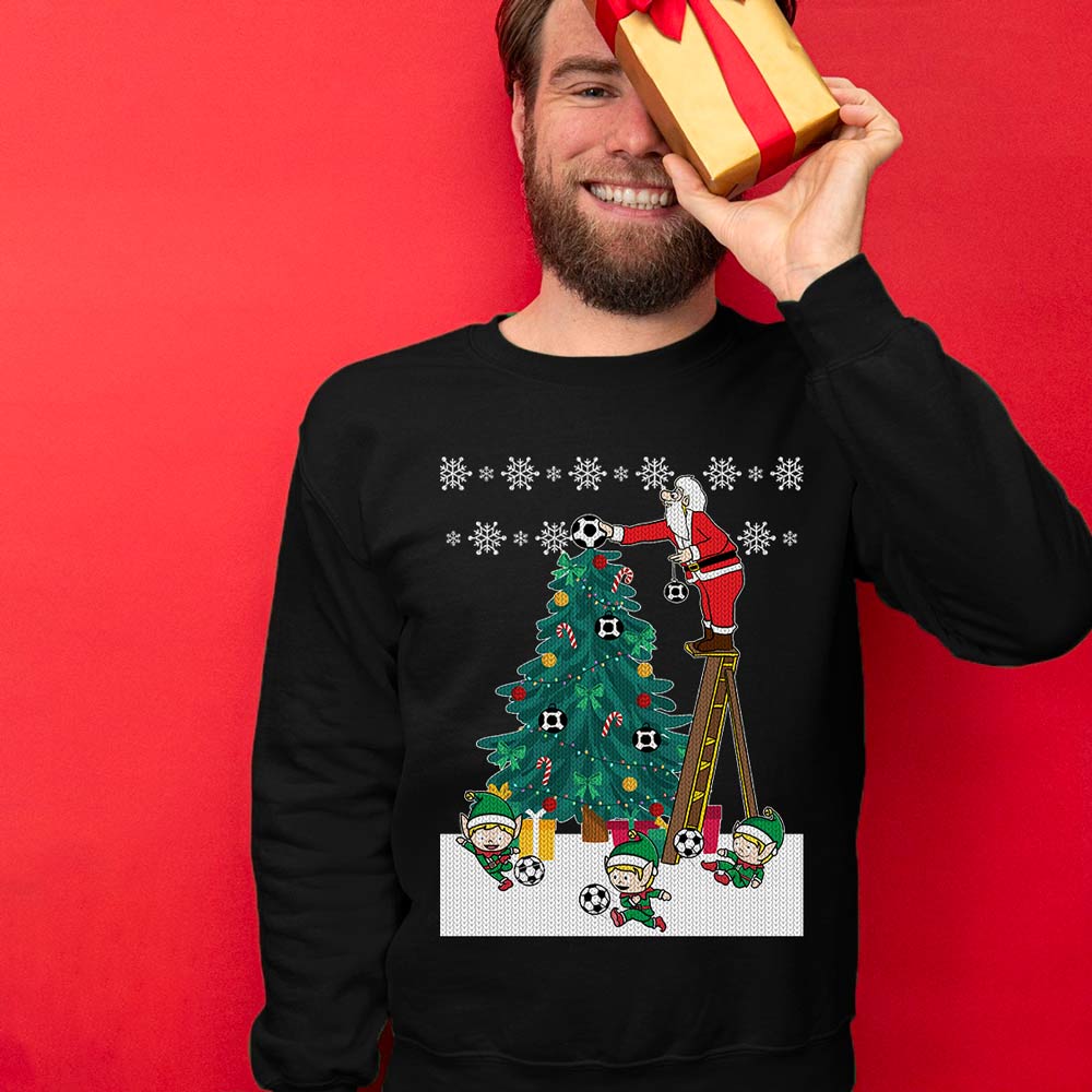 Fast shipping and delighted service: Our Funny Ugly Christmas Sweaters are produced and delivered to your location as fast as we could. SANTA DECORATING SOCCER CHRISTMAS TREE UGLY SWEATER is ideal for last-minute Christmas shirts for parties. We pledge to provide excellent customer service around-the-clock!