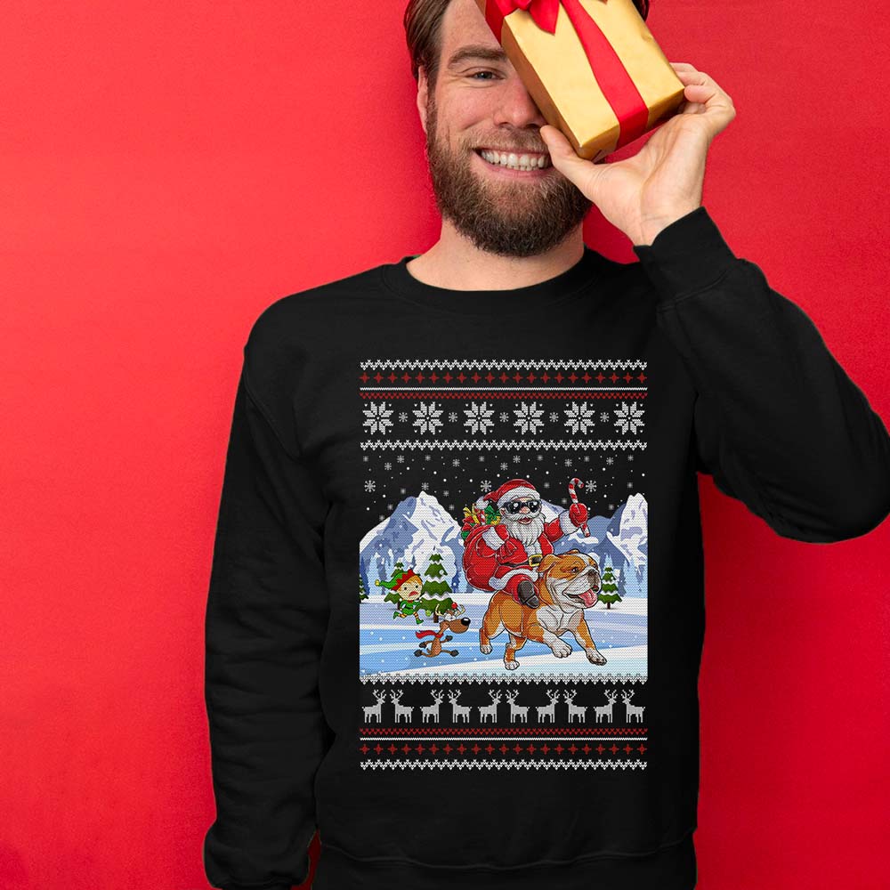 Santa Riding Bulldog Ugly Christmas Sweater is a must for Christmas parties and for your festive season memories. We understand the importance of finding the perfect Ugly Sweater that matches your style and personality. That’s why we curate a collection that guarantees uniqueness and humor, so you can express your festive spirit with pride. Discover Ugly Christmas Sweaters that will make you the life of the party!