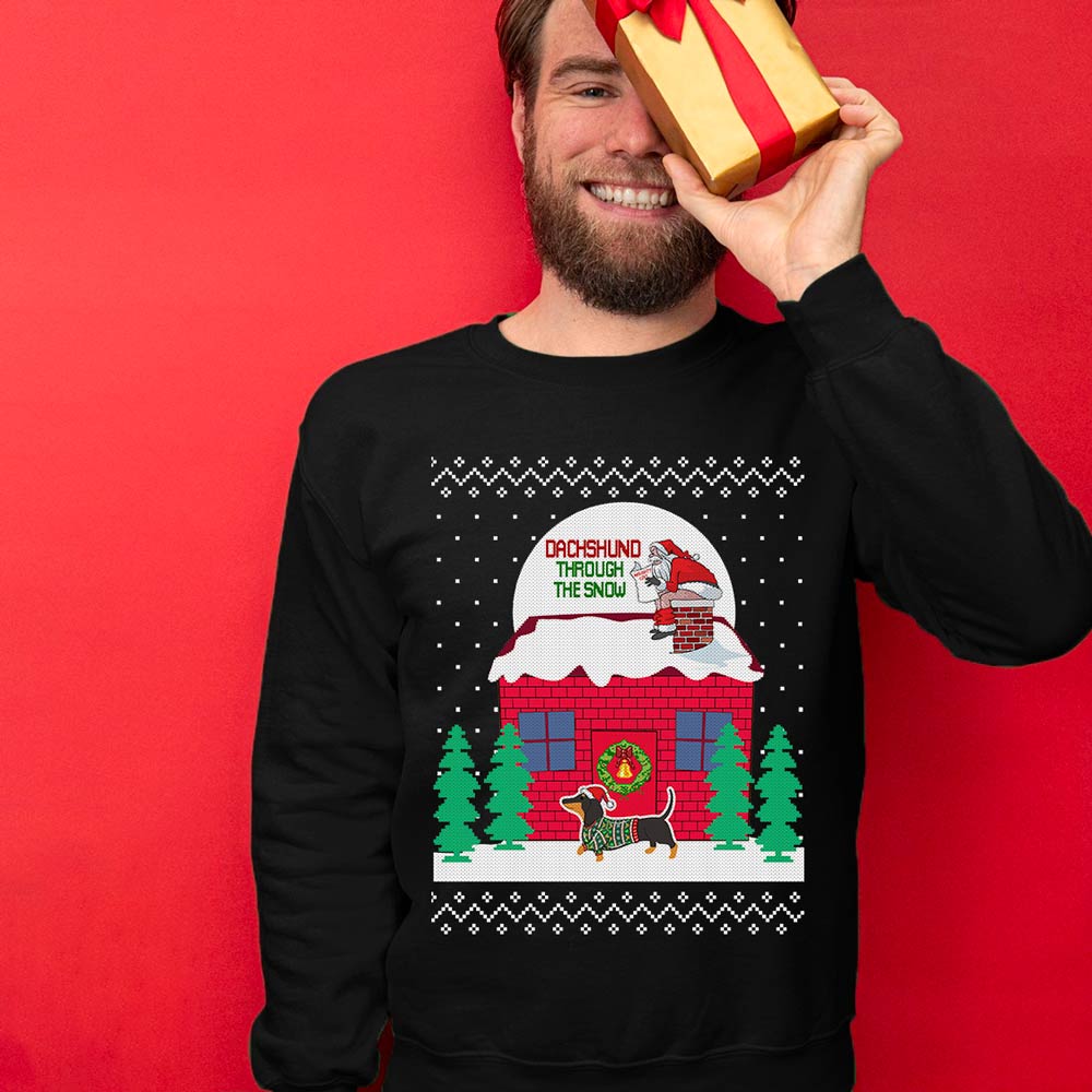 Fast shipping and delighted service: Our Funny Ugly Christmas Sweaters are produced and delivered to your location as fast as we could. FUNNY DACHSHUND UGLY CHRISTMAS SWEATER is ideal for last-minute Christmas shirts for parties. We pledge to provide excellent customer service around-the-clock!
