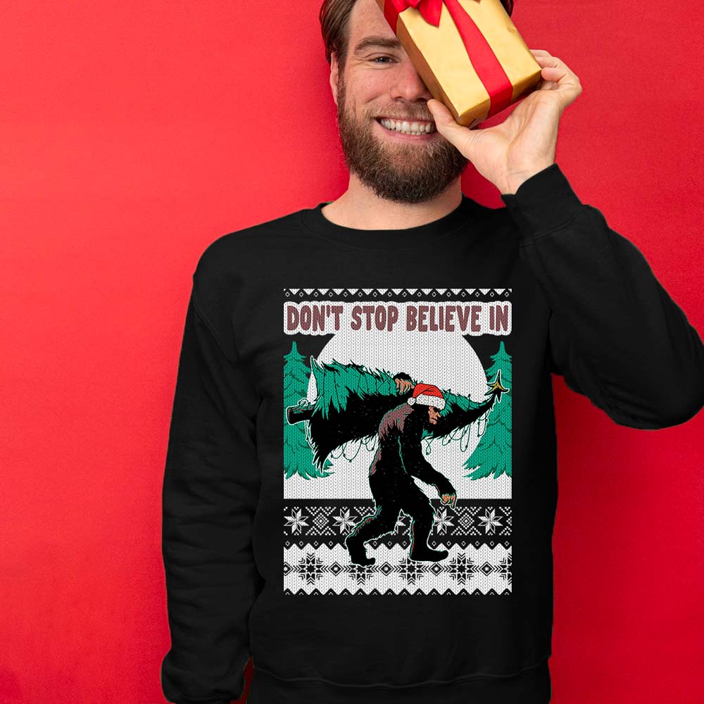 Don’t Stop Believe In Bigfoot Ugly Christmas Sweater is a must for Christmas parties and for your festive season memories. We understand the importance of finding the perfect Ugly Sweater that matches your style and personality. That’s why we curate a collection that guarantees uniqueness and humor, so you can express your festive spirit with pride. Discover Ugly Christmas Sweaters that will make you the life of the party!