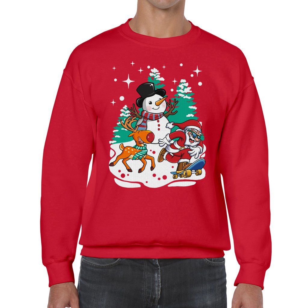 Looking for a perfect Ugly Sweater that matches your style and personality for Christmas parties? Skateboarding Santa And Reindeer Men’s Ugly Sweater is an ideal option for you. We carefully select a collection that ensures originality and humor so you may proudly express your holiday spirit. Explore Ugly Christmas Sweaters that will make you the center of attention at the gathering!