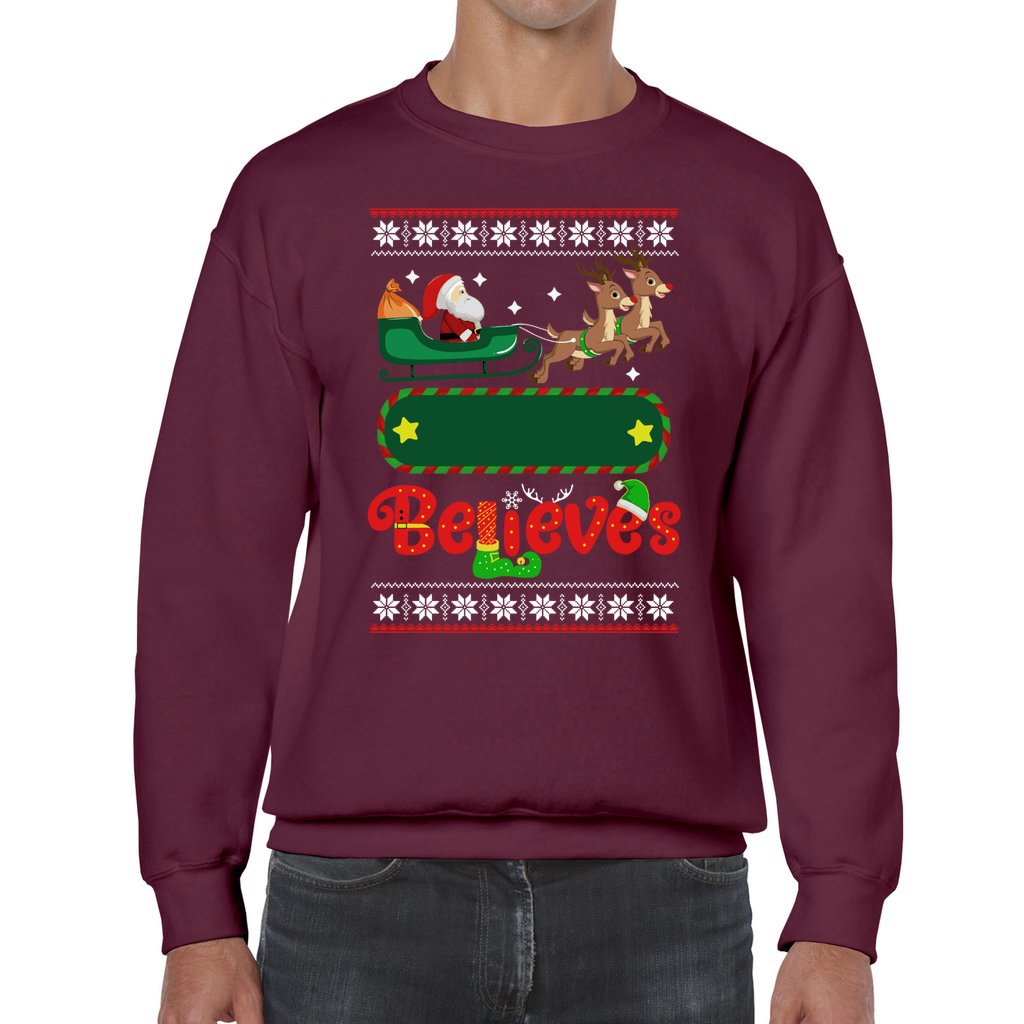Fast shipping and delighted service: Our Funny Ugly Christmas Sweaters are produced and delivered to your location as fast as we could. BELIEVE SANTA SLEIGH PERSONALIZED UGLY CHRISTMAS SWEATER MEN is ideal for last-minute Christmas shirts for parties. We pledge to provide excellent customer service around-the-clock!