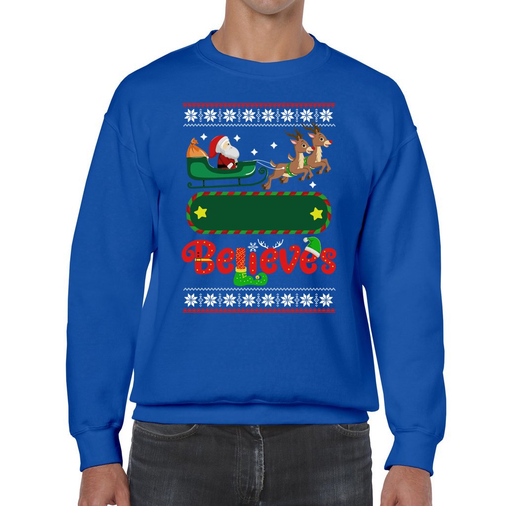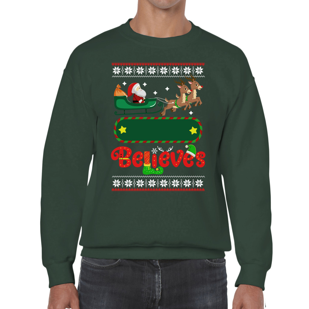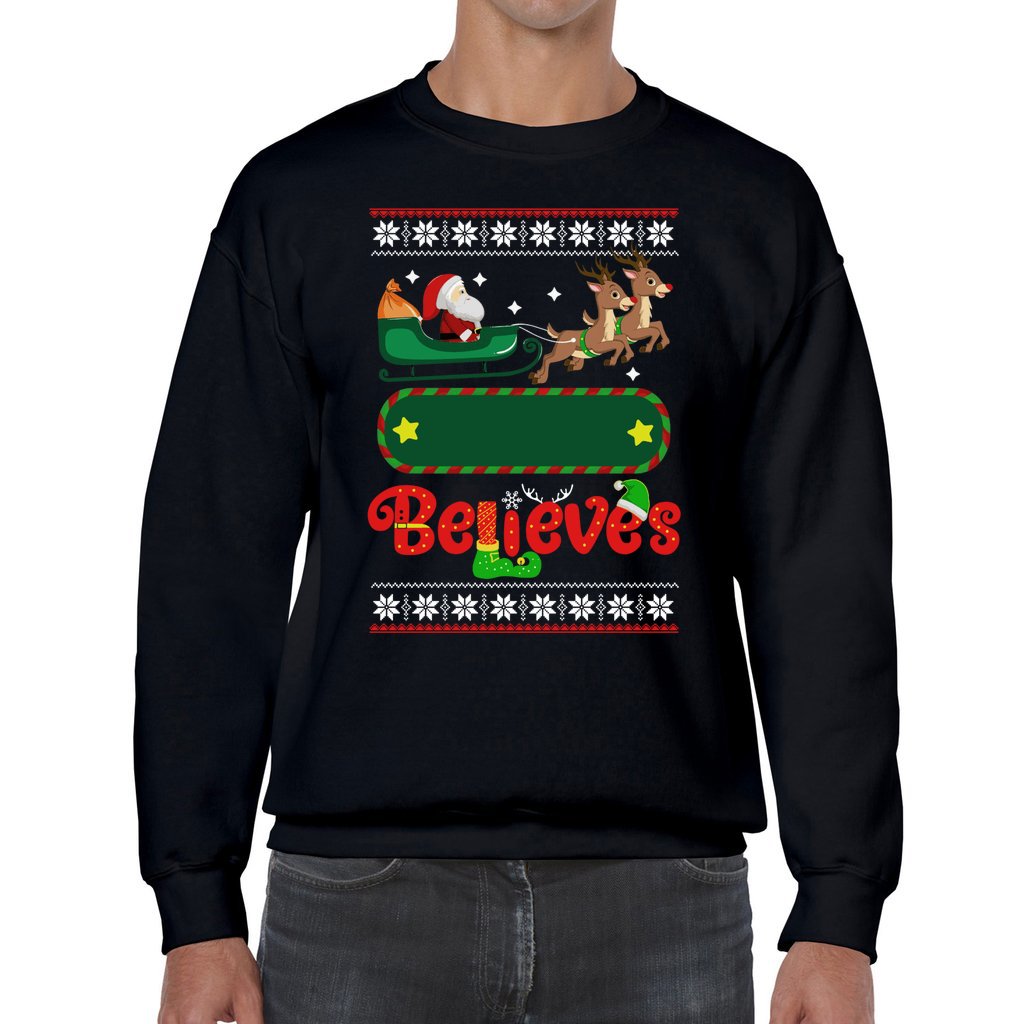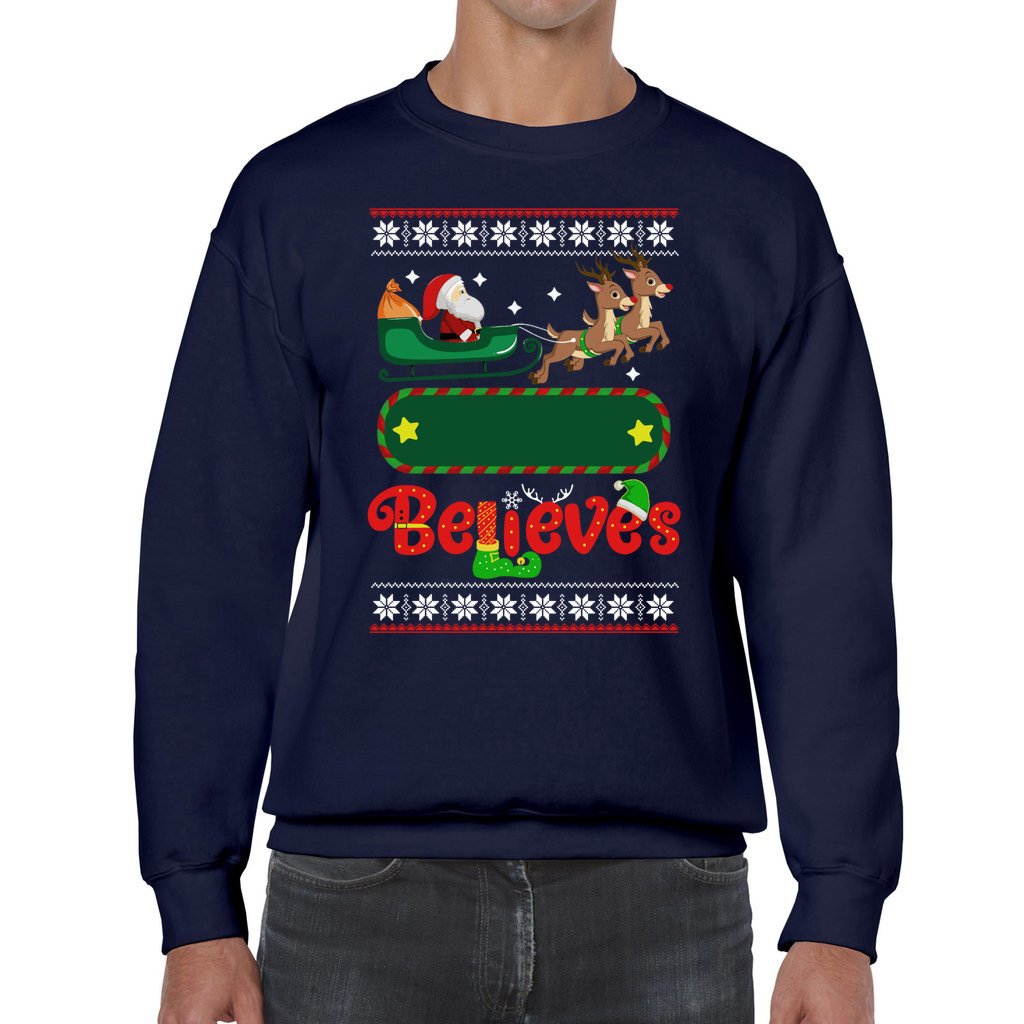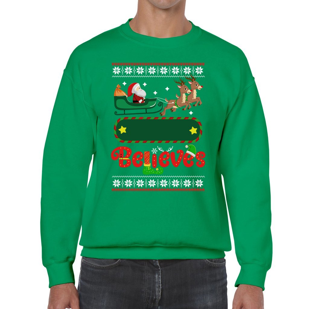 Fast shipping and delighted service: Our Funny Ugly Christmas Sweaters are produced and delivered to your location as fast as we could. BELIEVE SANTA SLEIGH PERSONALIZED UGLY CHRISTMAS SWEATER WOMEN is ideal for last-minute Christmas shirts for parties. We pledge to provide excellent customer service around-the-clock!