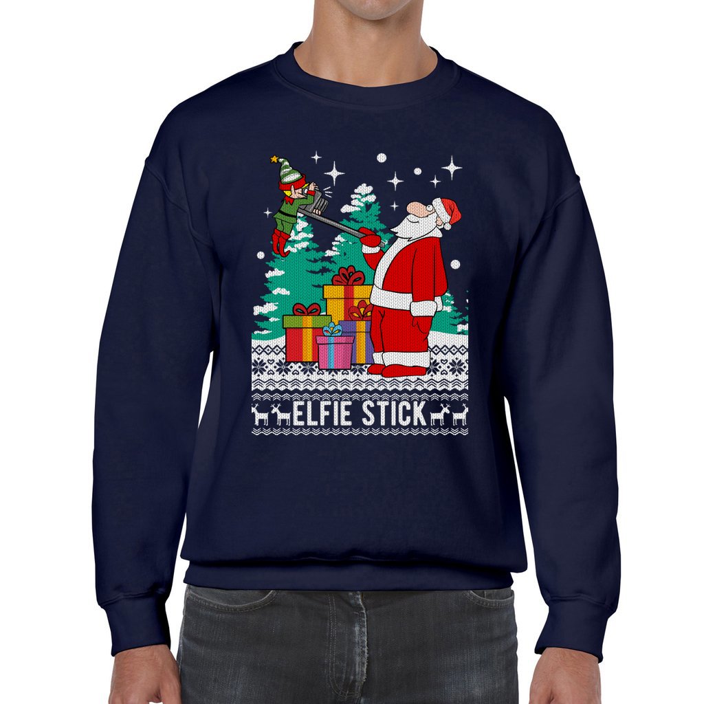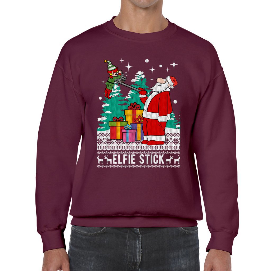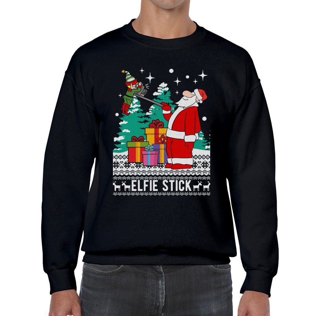 Elf Santa Selfie Men’s Ugly Christmas Sweater is a must for Christmas parties and your holiday season memories. Finding the ideal ugly sweater that complements your style and personality is important, as you well know. For this reason, we carefully select a collection that ensures originality and comedy so you may proudly exhibit your holiday passion. Find ugly Christmas sweaters that will make you the center of attention at the gathering!