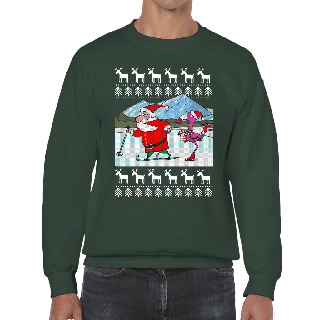 Comfortable and warm: We made each item with love and care, for comfort on your skin and warmth enough for you to show off your funny side just wearing this Flamingo Skating Santa Men’s Ugly Christmas Sweater to parties. With crew-neck style,