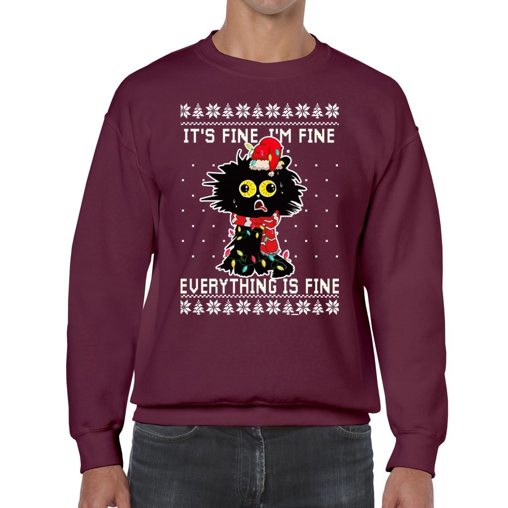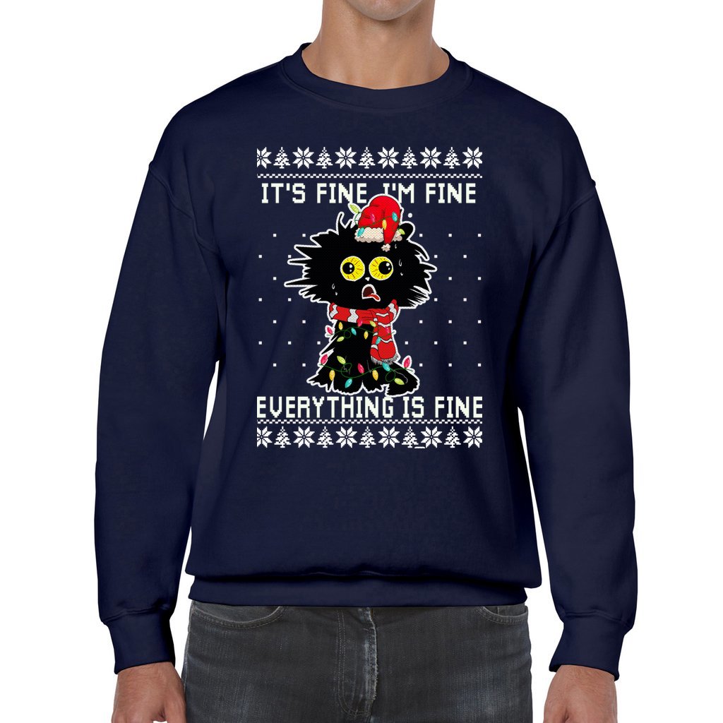 Funny I’m Fine Black Cat Men’s Ugly Christmas Sweater is a must for Christmas parties and for your festive season memories. We understand the importance of finding the perfect Ugly Sweater that matches your style and personality. That’s why we curate a collection that guarantees uniqueness and humor, so you can express your festive spirit with pride. Discover Ugly Christmas Sweaters that will make you the life of the party!