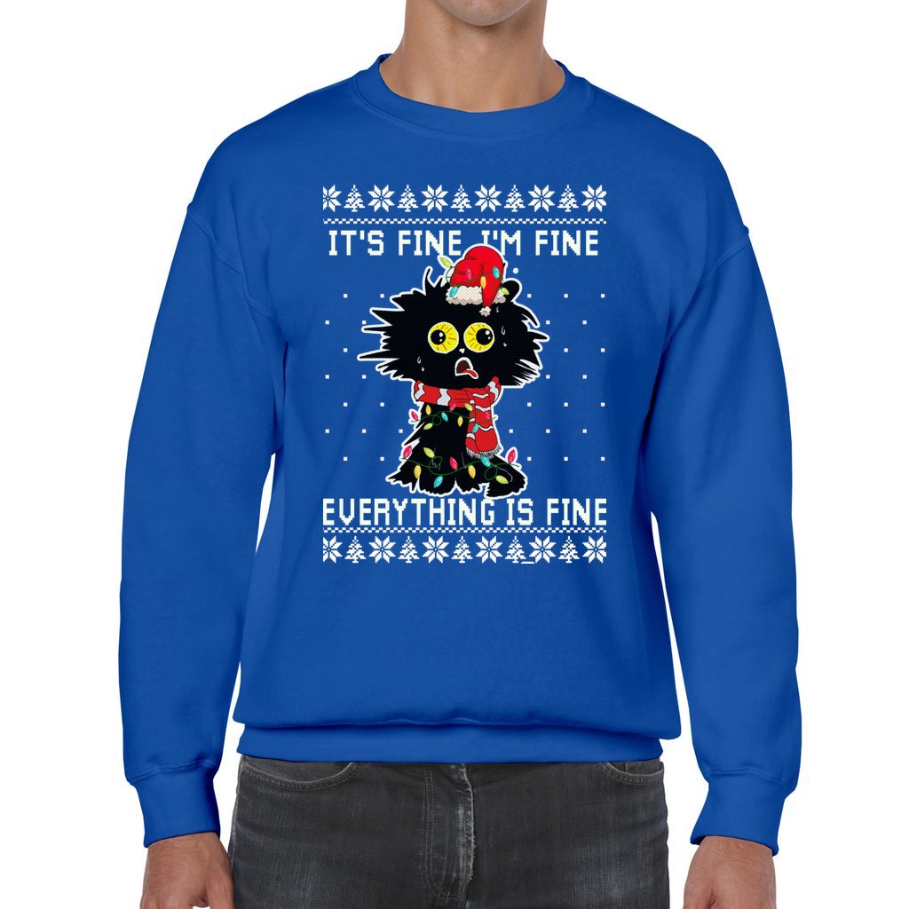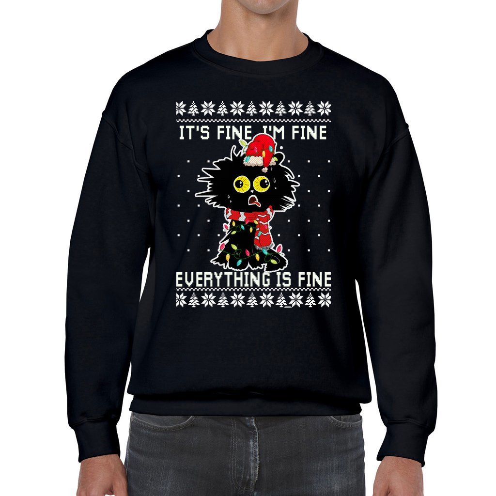 Comfortable and warm: We made each item with love and care, for comfort on your skin and warmth enough for you to show off your funny side just wearing this Funny I’m Fine Black Cat Women’s Ugly Christmas Sweater to parties. With crew-neck style,