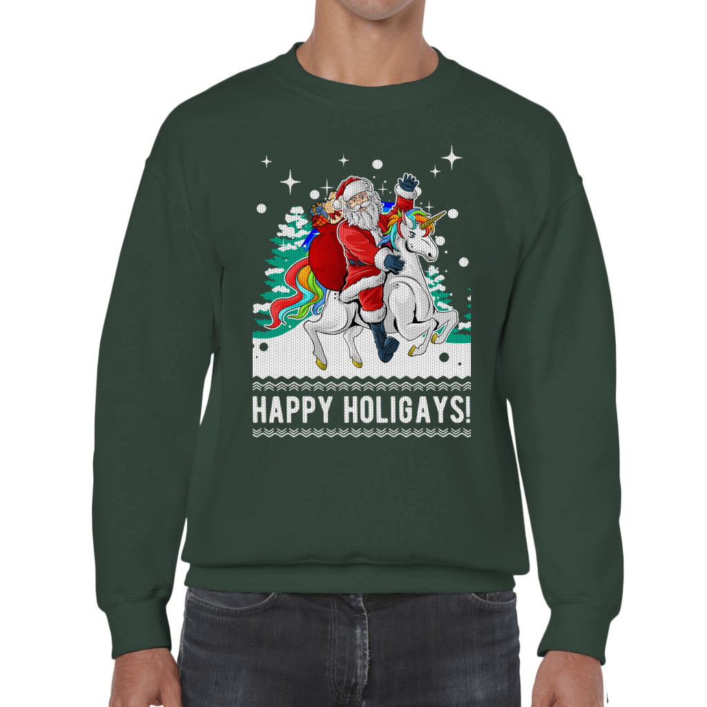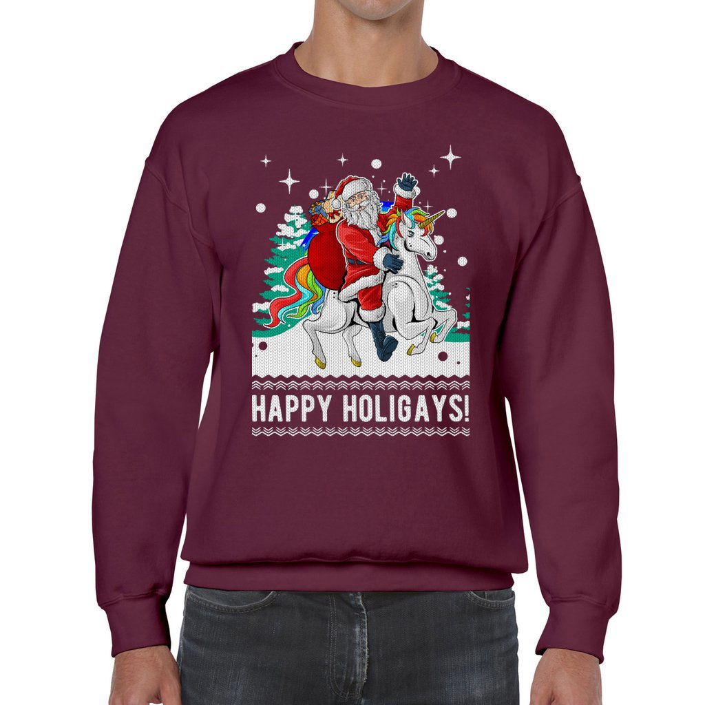Fast shipping and delighted service: Our Funny Ugly Christmas Sweaters are produced and delivered to your location as fast as we could. FUNNY SANTA HAPPY HOLIGAYS UGLY CHRISTMAS SWEATER is ideal for last-minute Christmas shirts for parties. We pledge to provide excellent customer service around-the-clock!