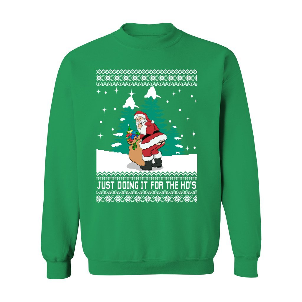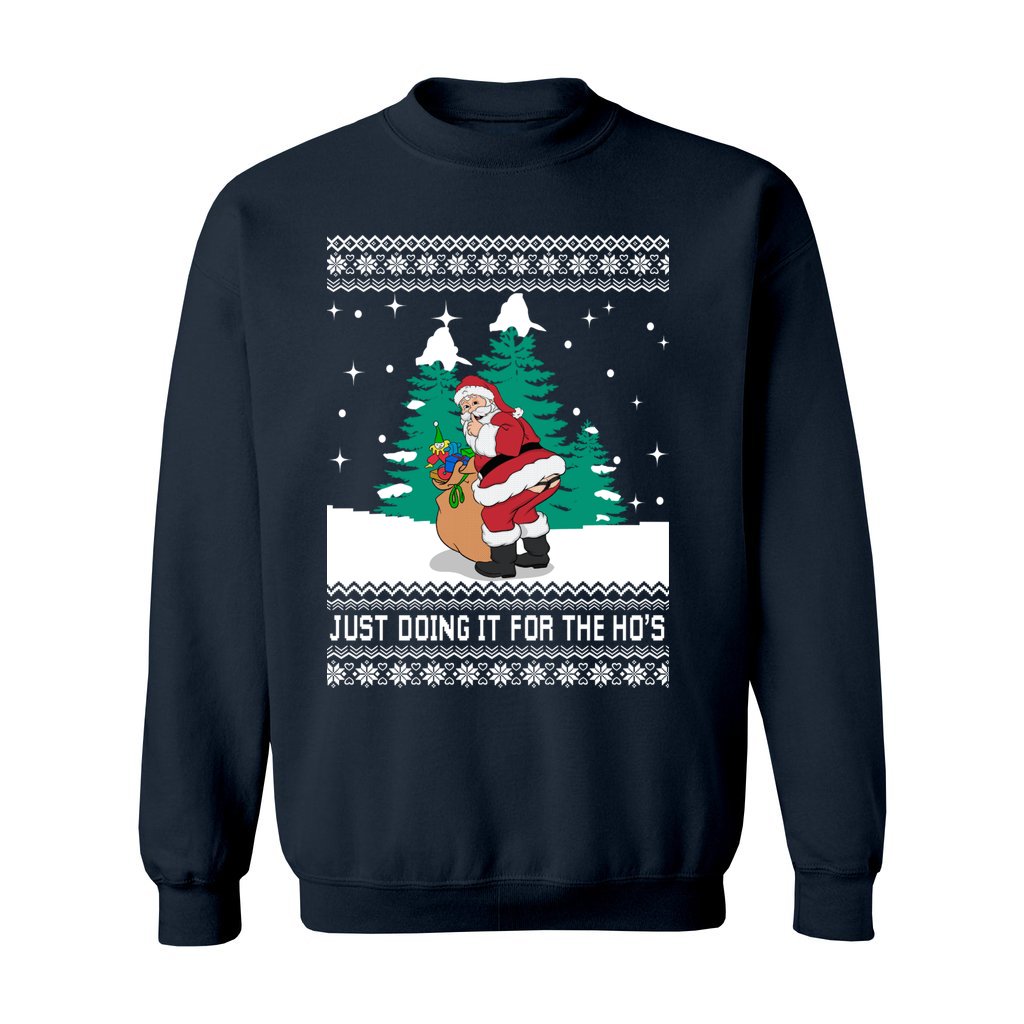 Funny Santa Just Doing It For The Ho’s Women’s Ugly Sweater has the ideal blend of merry charm and silly comedy. Pick out your Ugly sweater now!