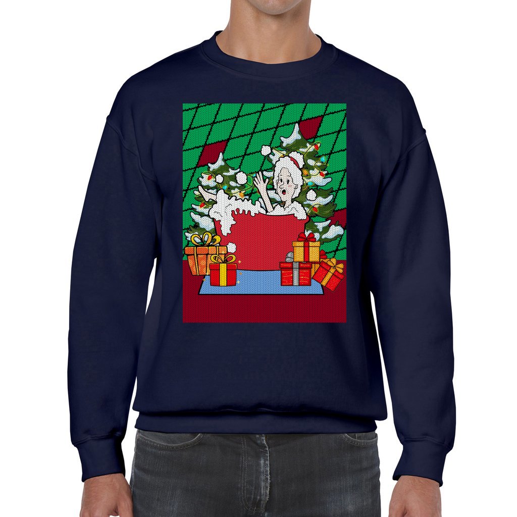 Fast shipping and delighted service: Our Funny Ugly Christmas Sweaters are produced and delivered to your location as fast as we could. FUNNY SANTA LADY BATHING CHRISTMAS SWEATER MEN is ideal for last-minute Christmas shirts for parties. We pledge to provide excellent customer service around-the-clock!