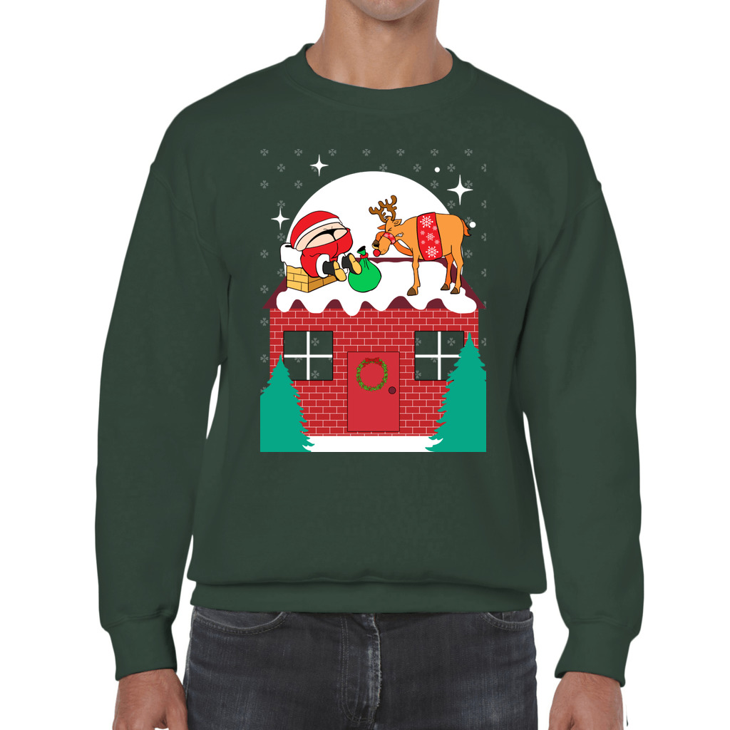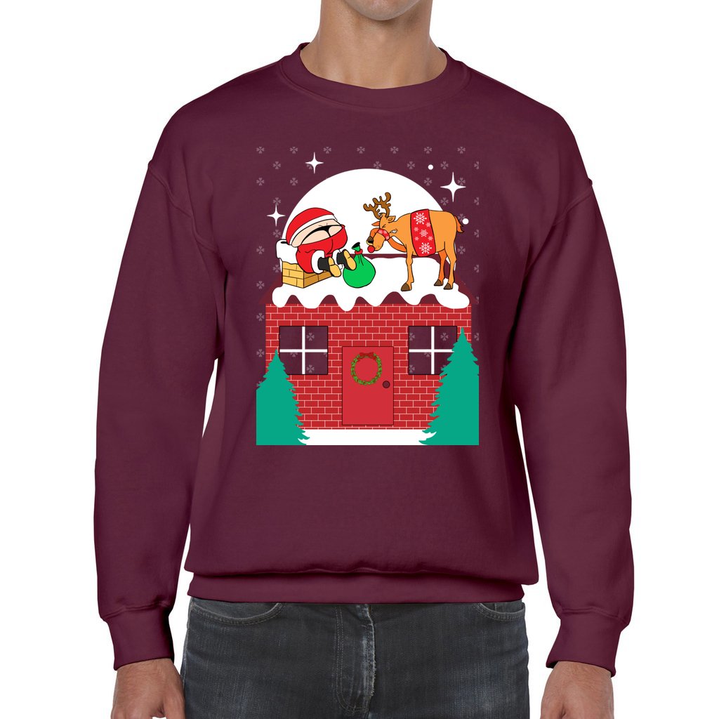 Comfortable and warm: We made each item with love and care, for comfort on your skin and warmth enough for you to show off your funny side just wearing this Funny Santa Reindeer Men’s Ugly Christmas Sweater to parties. With crew-neck style,