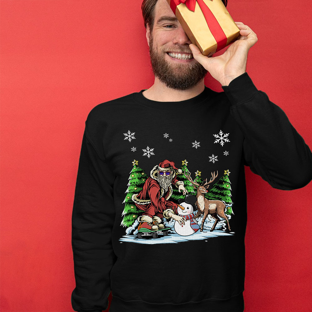 Looking for a perfect Ugly Sweater that matches your style and personality for Christmas parties? Funny Santa Skateboarding Christmas Sweater is an ideal option for you. We carefully select a collection that ensures originality and humor so you may proudly express your holiday spirit. Explore Ugly Christmas Sweaters that will make you the center of attention at the gathering!