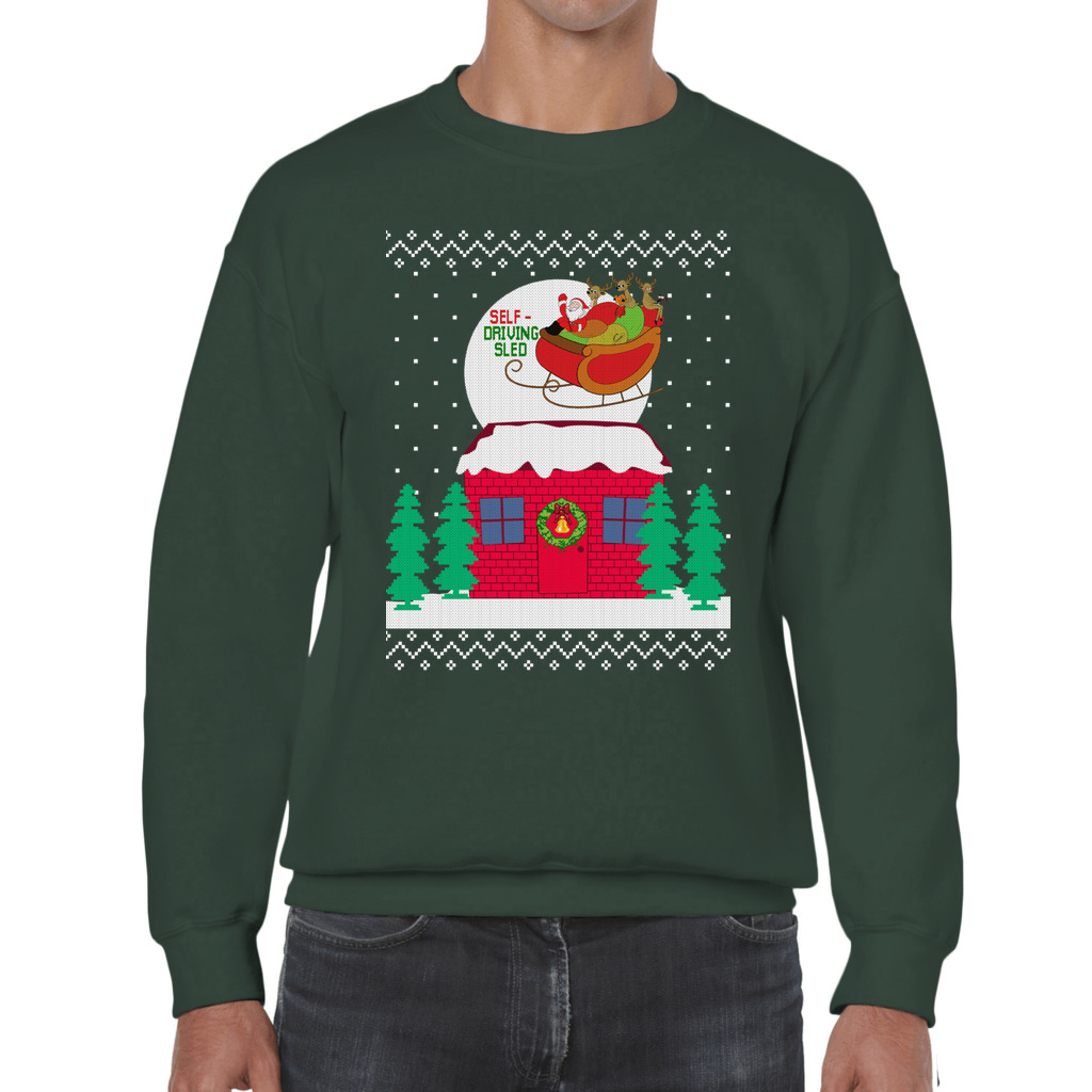 Funny Self-driving Sled Men’s Ugly Christmas Sweater is a must for Christmas parties and your holiday season memories. Finding the ideal ugly sweater that complements your style and personality is important, as you well know. For this reason, we carefully select a collection that ensures originality and comedy so you may proudly exhibit your holiday passion. Find ugly Christmas sweaters that will make you the center of attention at the gathering!