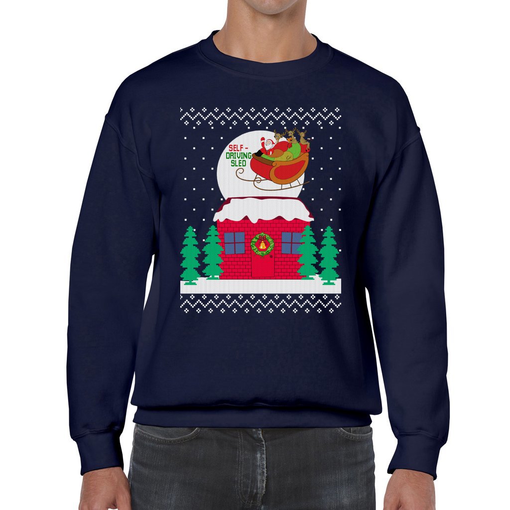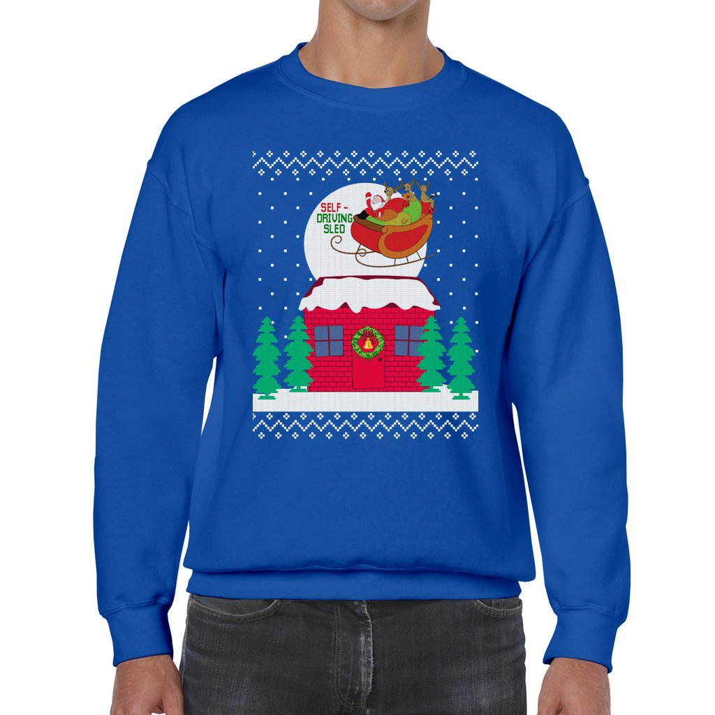Funny Self-driving Sled Women’s Ugly Christmas Sweater is a must for Christmas parties and your holiday season memories. Finding the ideal ugly sweater that complements your style and personality is important, as you well know. For this reason, we carefully select a collection that ensures originality and comedy so you may proudly exhibit your holiday passion. Find ugly Christmas sweaters that will make you the center of attention at the gathering!