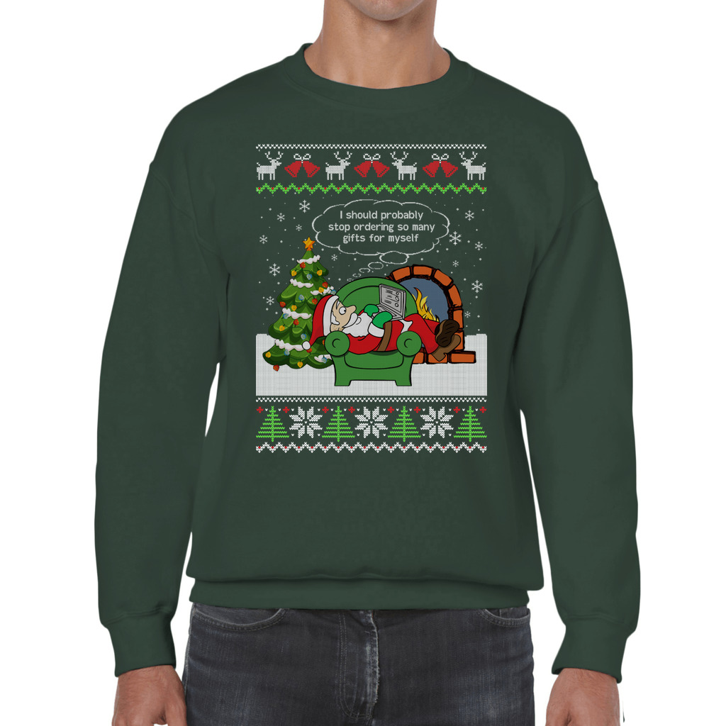 Funny Shopping Santa Men’s Ugly Christmas Sweater is a must for Christmas parties and your holiday season memories. Finding the ideal ugly sweater that complements your style and personality is important, as you well know. For this reason, we carefully select a collection that ensures originality and comedy so you may proudly exhibit your holiday passion. Find ugly Christmas sweaters that will make you the center of attention at the gathering!