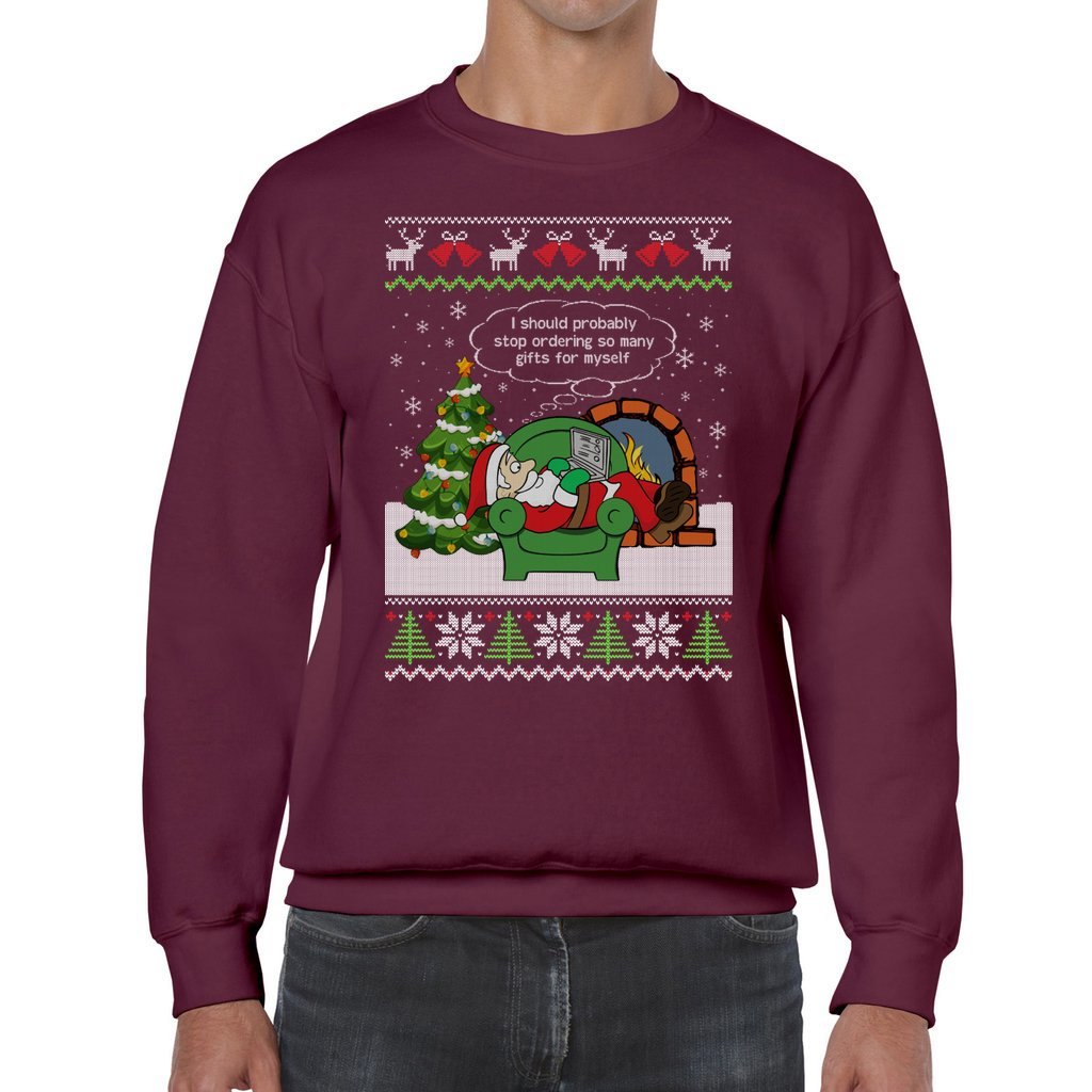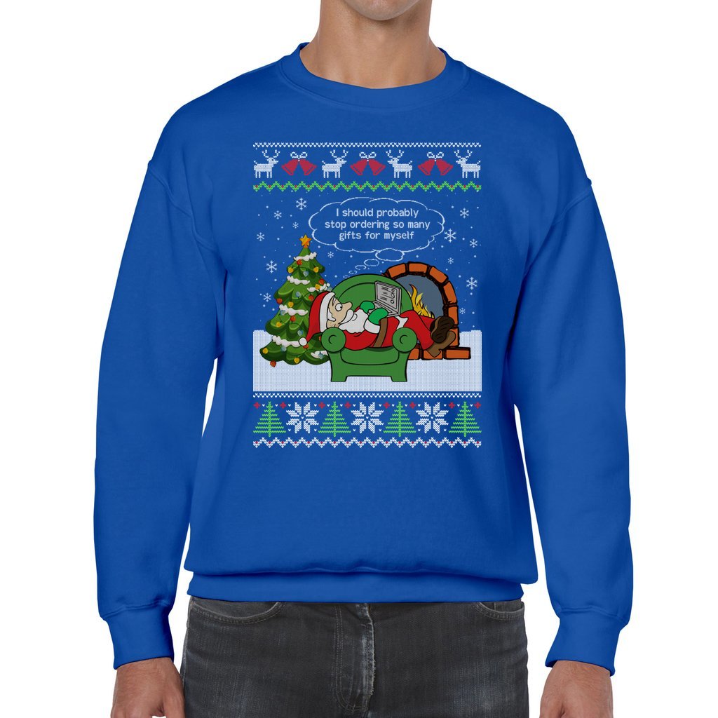 Funny Shopping Santa Ugly Christmas Sweater is a must for Christmas parties and your holiday season memories. Finding the ideal ugly sweater that complements your style and personality is important, as you well know. For this reason, we carefully select a collection that ensures originality and comedy so you may proudly exhibit your holiday passion. Find ugly Christmas sweaters that will make you the center of attention at the gathering!