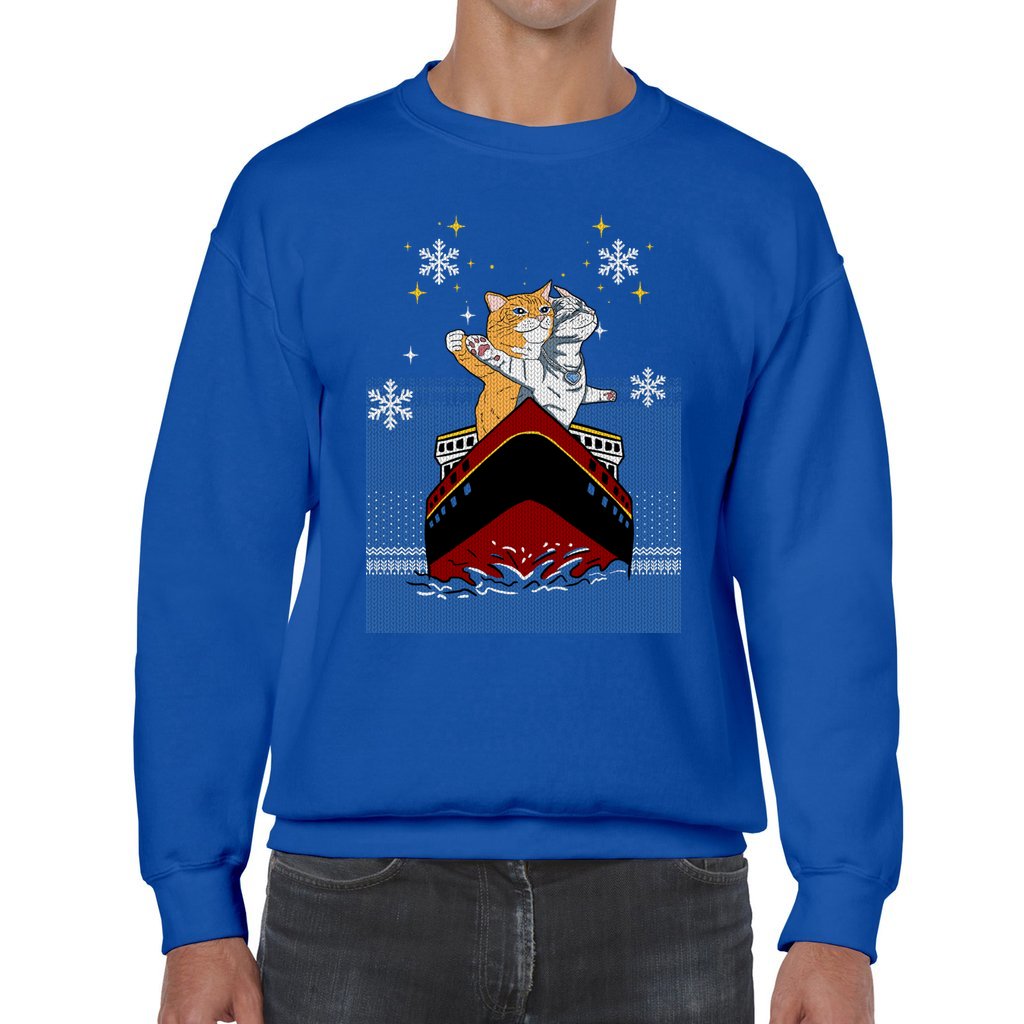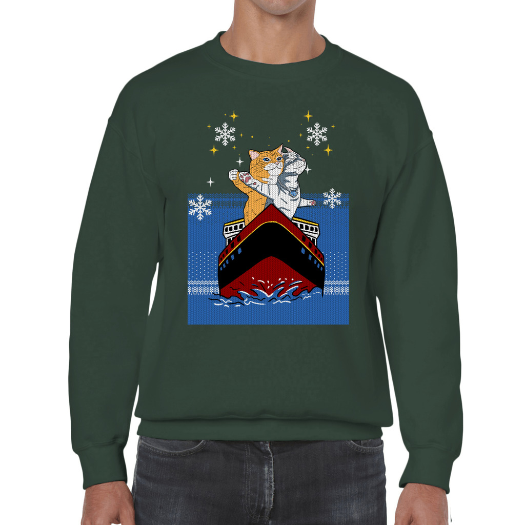 Comfortable and warm: We made each item with love and care, for comfort on your skin and warmth enough for you to show off your funny side just wearing this Gatos Titanic Ugly Christmas Sweater to parties. With crew-neck style,