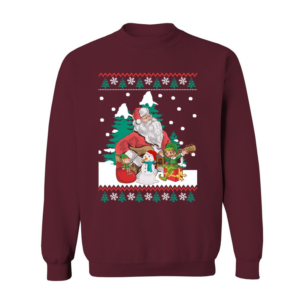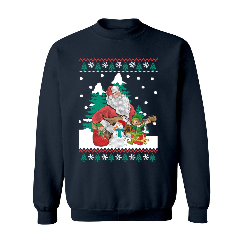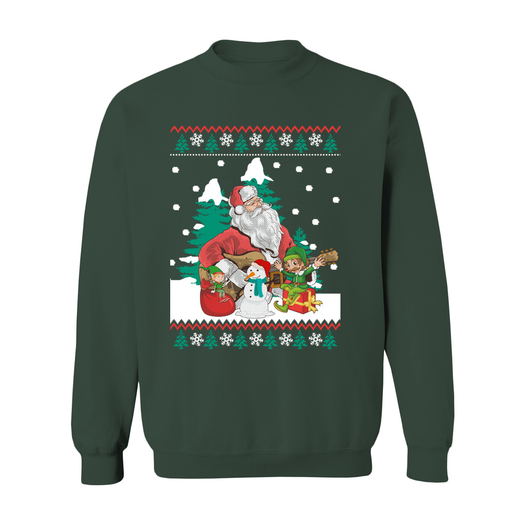 Looking for a perfect Ugly Sweater that matches your style and personality for Christmas parties? Guitar Santa & Elf Women’s Ugly Sweater is an ideal option for you. We carefully select a collection that ensures originality and humor so you may proudly express your holiday spirit. Explore Ugly Christmas Sweaters that will make you the center of attention at the gathering!
