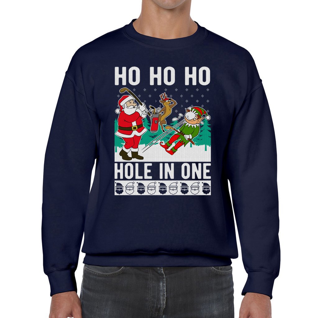 Hole In One Santa Golf Men’s Ugly Sweater is a must for Christmas parties and for your festive season memories. We understand the importance of finding the perfect Ugly Sweater that matches your style and personality. That’s why we curate a collection that guarantees uniqueness and humor, so you can express your festive spirit with pride. Discover Ugly Christmas Sweaters that will make you the life of the party!