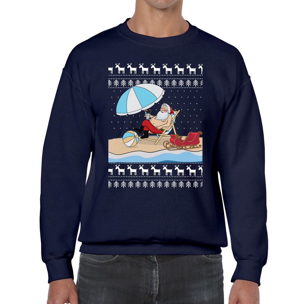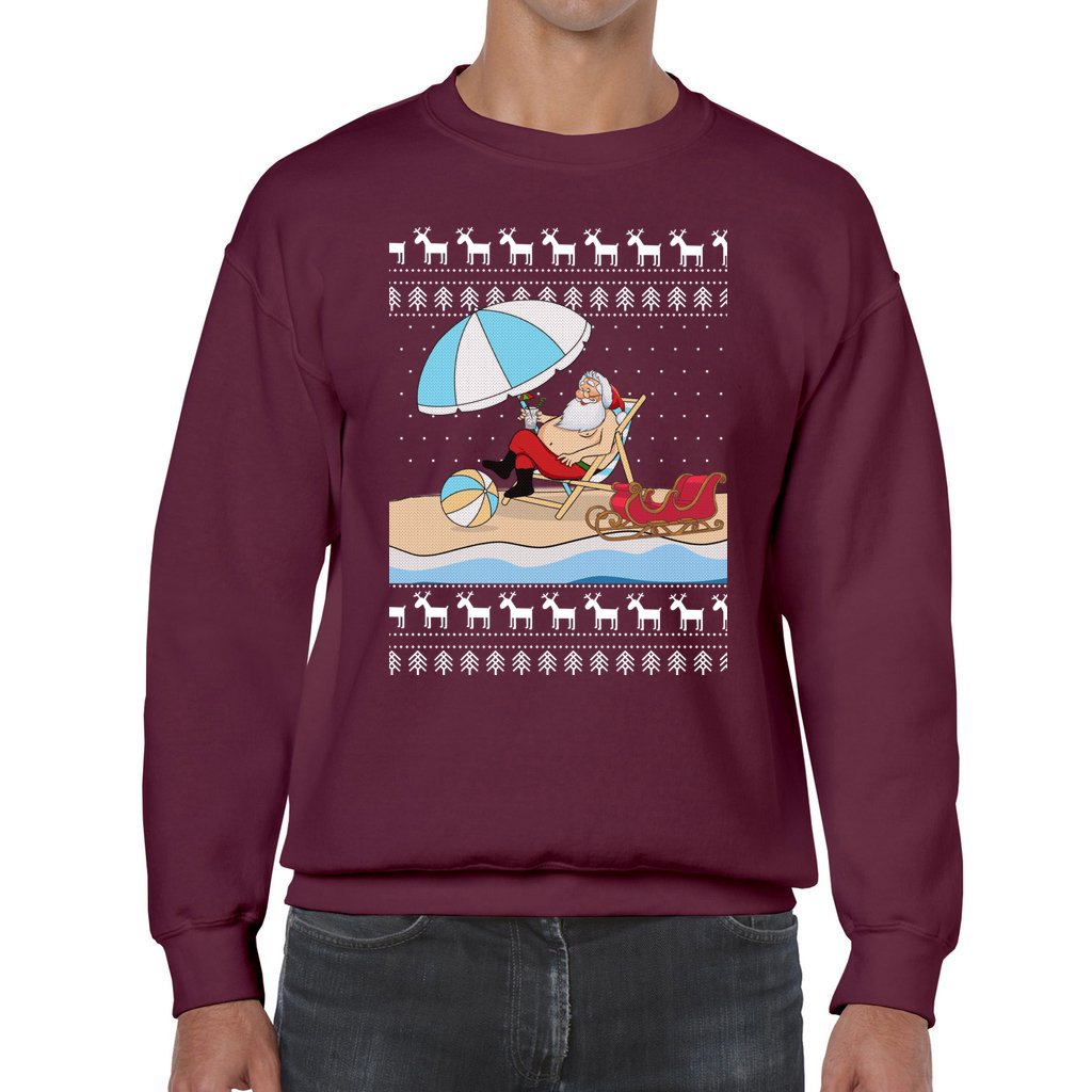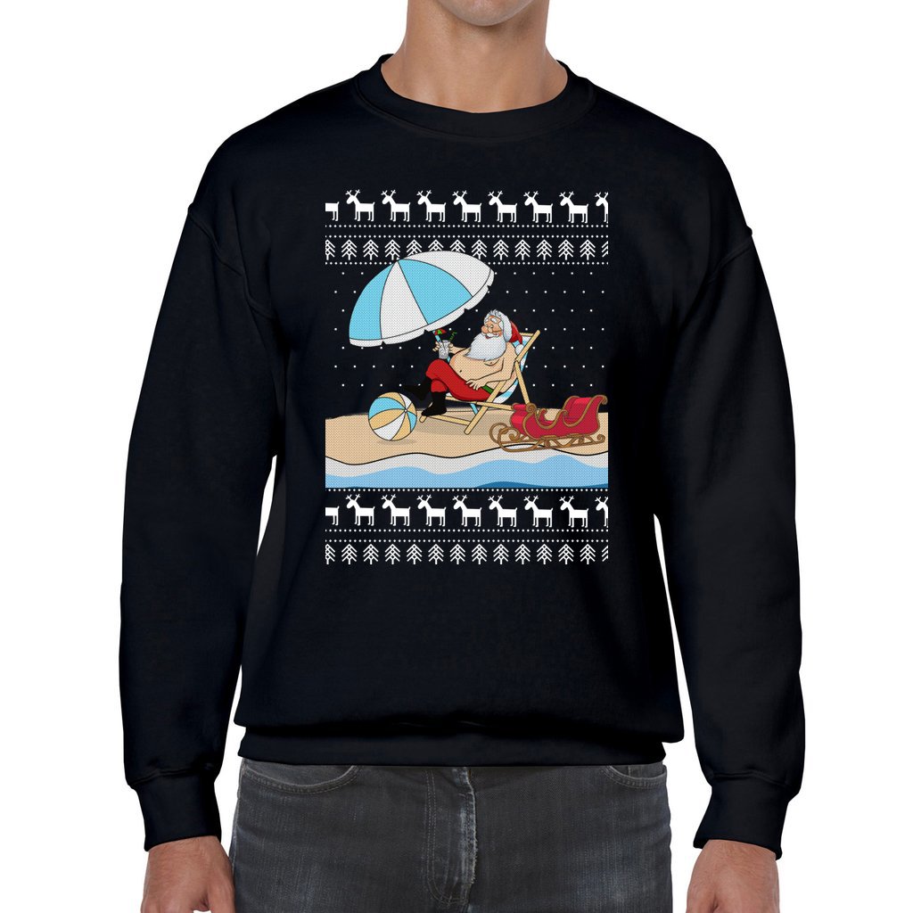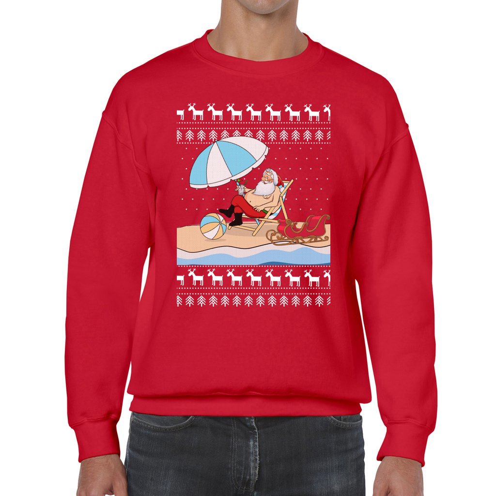 Comfortable and warm: We made each item with love and care, for comfort on your skin and warmth enough for you to show off your funny side just wearing this Santa On The Beach Christmas Sweater to parties. With crew-neck style,