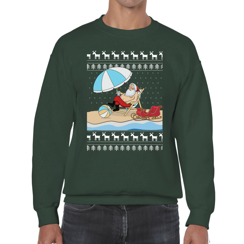 Comfortable and warm: We made each item with love and care, for comfort on your skin and warmth enough for you to show off your funny side just wearing this Santa On The Beach Christmas Sweater Women to parties. With crew-neck style,
