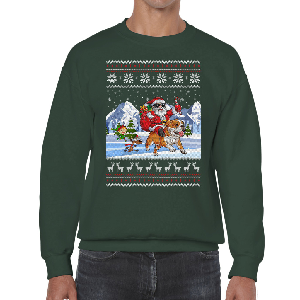 Comfortable and warm: We made each item with love and care, for comfort on your skin and warmth enough for you to show off your funny side just wearing this Santa Riding Bulldog Men’s Ugly Christmas Sweater to parties. With crew-neck style,