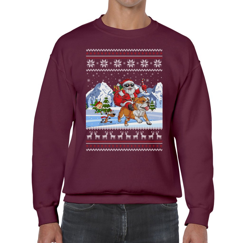 Santa Riding Bulldog Men’s Ugly Christmas Sweater is a must for Christmas parties and for your festive season memories. We understand the importance of finding the perfect Ugly Sweater that matches your style and personality. That’s why we curate a collection that guarantees uniqueness and humor, so you can express your festive spirit with pride. Discover Ugly Christmas Sweaters that will make you the life of the party!