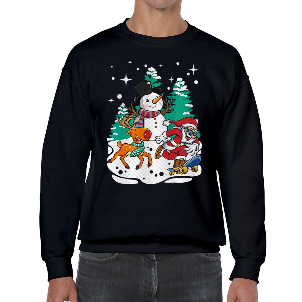 Looking for a perfect Ugly Sweater that matches your style and personality for Christmas parties? Skateboarding Santa And Reindeer Ugly Sweater is an ideal option for you. We carefully select a collection that ensures originality and humor so you may proudly express your holiday spirit. Explore Ugly Christmas Sweaters that will make you the center of attention at the gathering!
